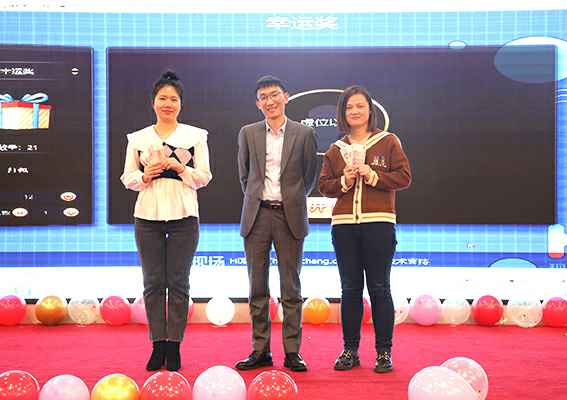 除了精彩纷呈的节目看得大家眼花缭乱外,最让人期待的莫过于抽奖环节啦。本次晚会一共进行六轮抽奖,除了实物抽奖外,现场还有数次现金抽奖哦,每一轮抽奖均有工作人员为我们抽取特等奖,一等奖等,就算没有抽到奖,我们也有幸运礼品奖等着我们,我们本次年会就是要实现人人有奖、处处幸运!